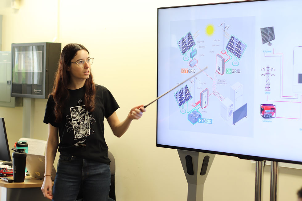 Students are well versed in distributed energy technology, such as solar photovoltaic and battery energy storage systems